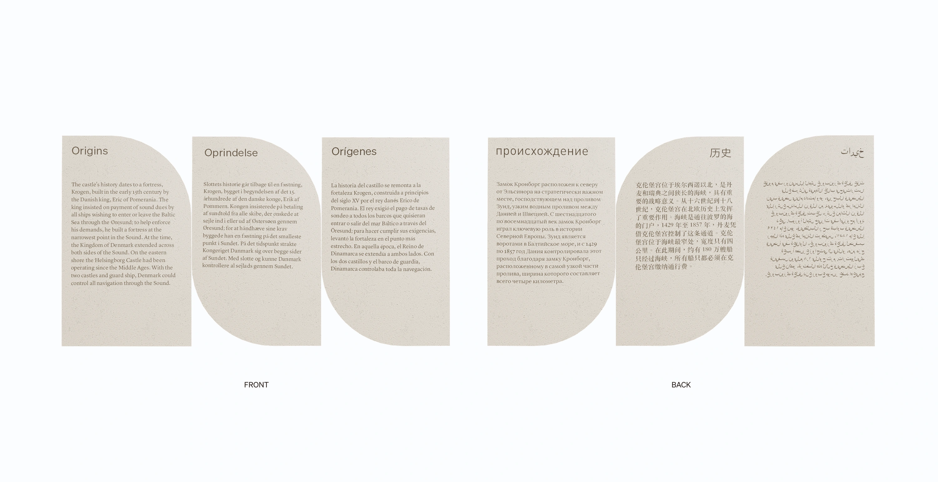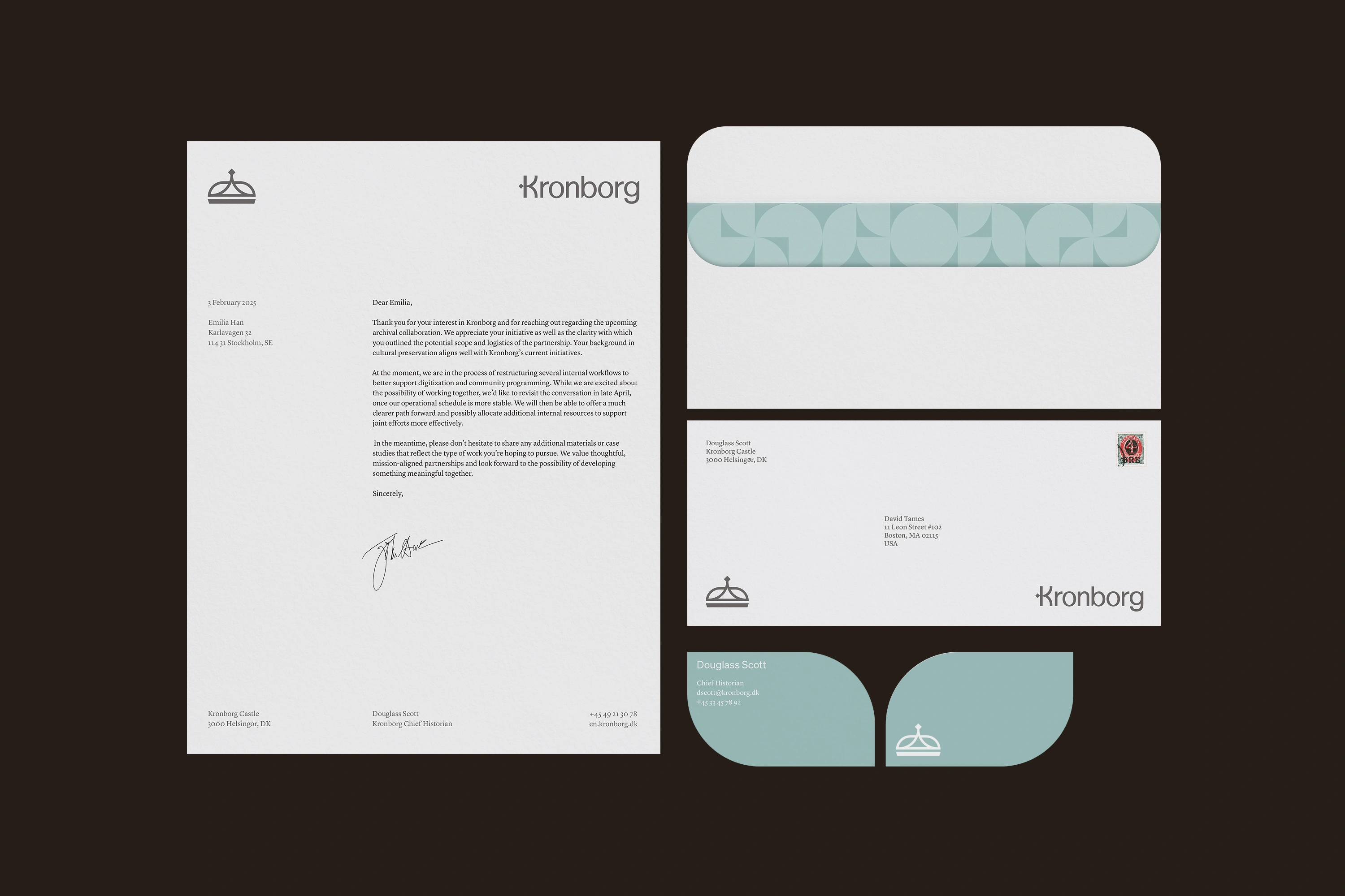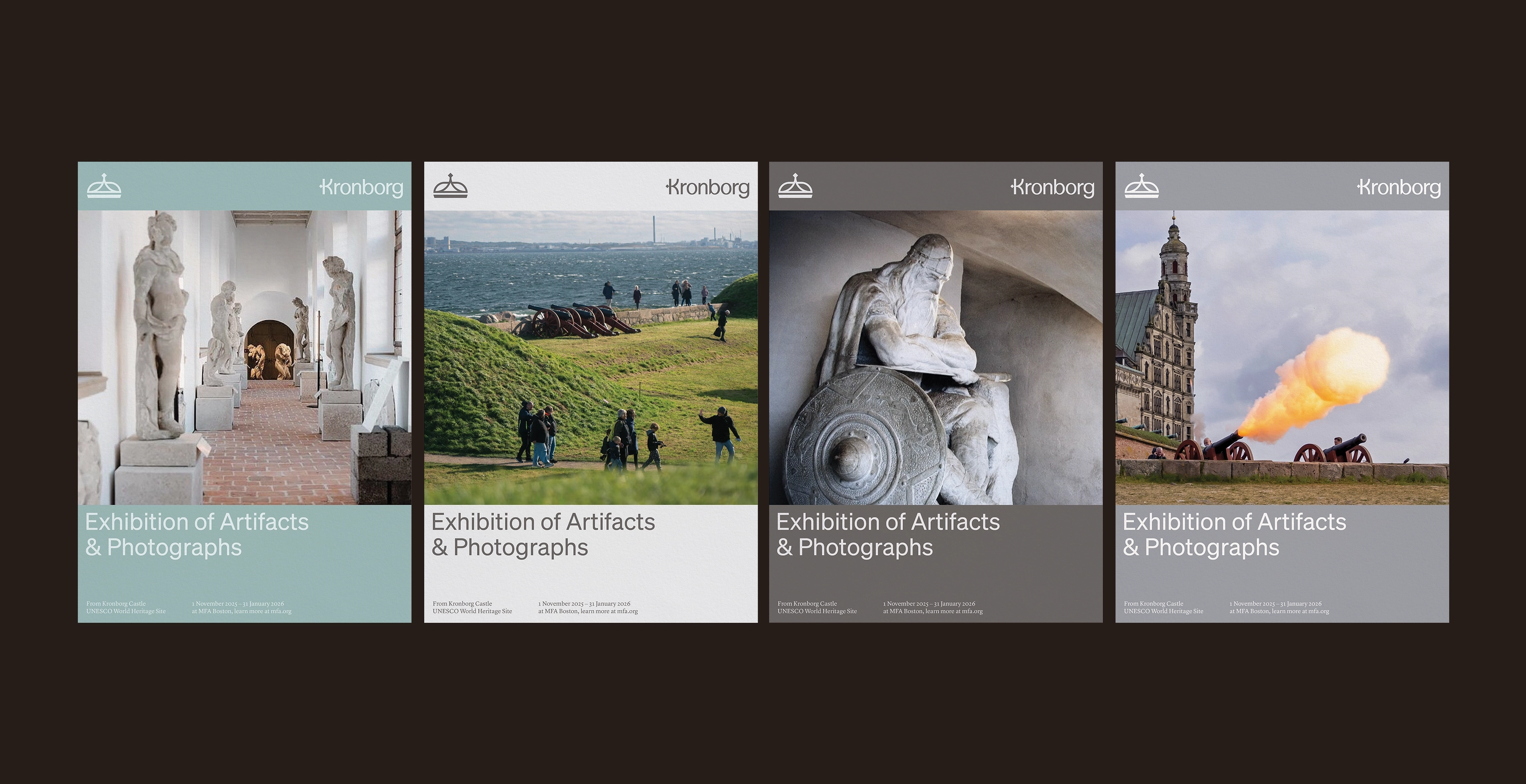 Aligned with the spacious, humble atmosphere of Kronborg's interior, this hypothetical identity system resists more romantic royal signals. It draws from themes of sea stone, coastal weather, and changing seasons. The result is a versatile visual system which is suited to modern needs while honoring the castle’s royal heritage, seaside location, and ethos.